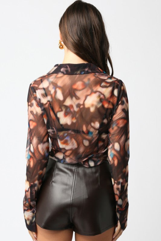 Dare to stand out with the Elsie Mesh Top, showcasing a bold button-down design crafted from delicate, sheer fabric. Woven for a standout look.